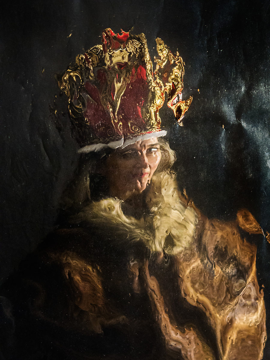 Entre rêve et réalité ou fantasmagorie, les rois et reines évoluent dans un monde imaginaire comme dans un conte. Ils apparaissent dans l’obscurité pour mieux disparaître.